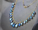 The Cosmic Necklace is handcrafted in solid 14K gold with rare Blue Labradorite drops that shimmer with deep celestial blues, like galaxies caught in motion. Each gem is hand-selected for its intense flash and glow.