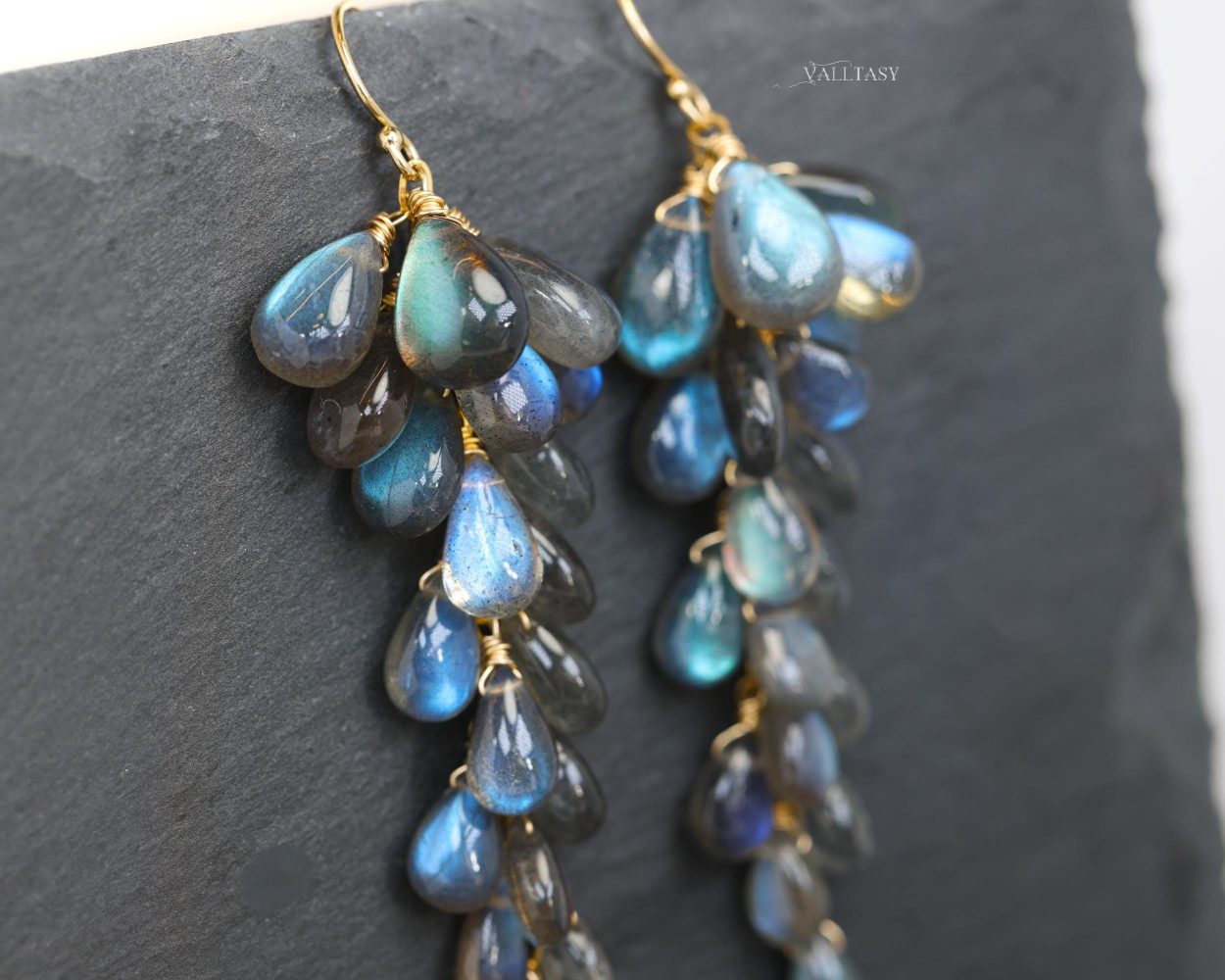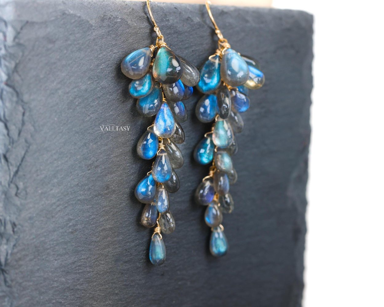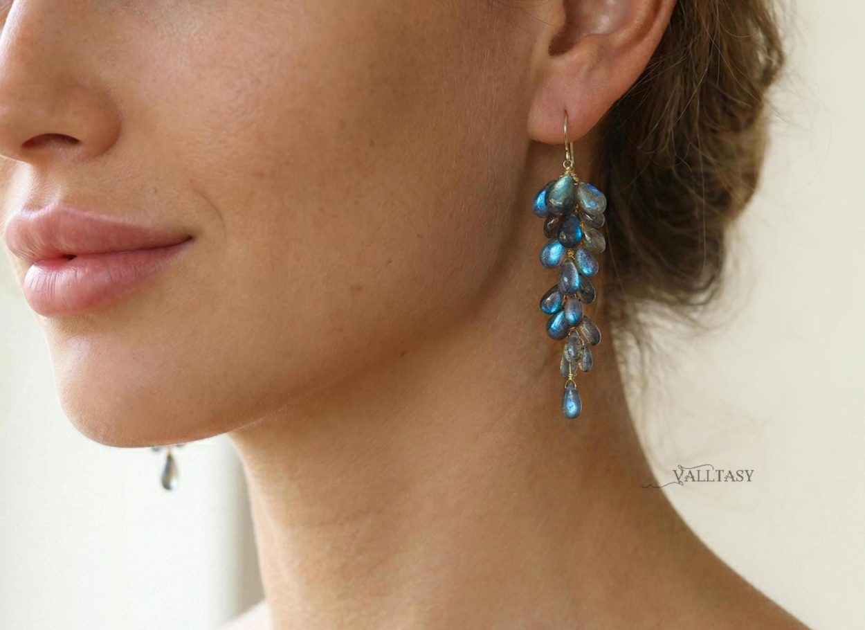 These glowing Labradorite earrings are handcrafted with rare Blue Labradorite drops that shimmer with deep celestial blues, like galaxies caught in motion. Each gem is hand-selected for its intense flash and glow. Each gem truly glows!