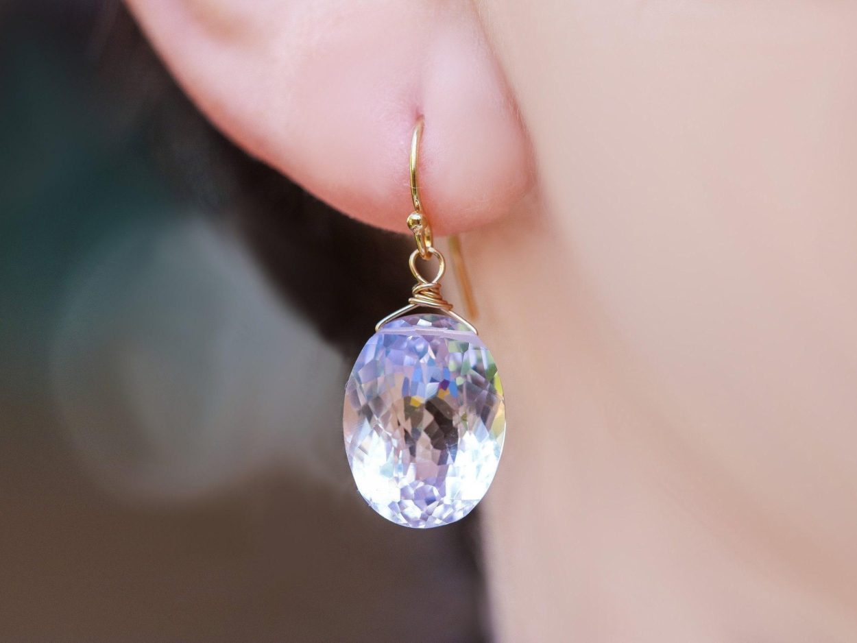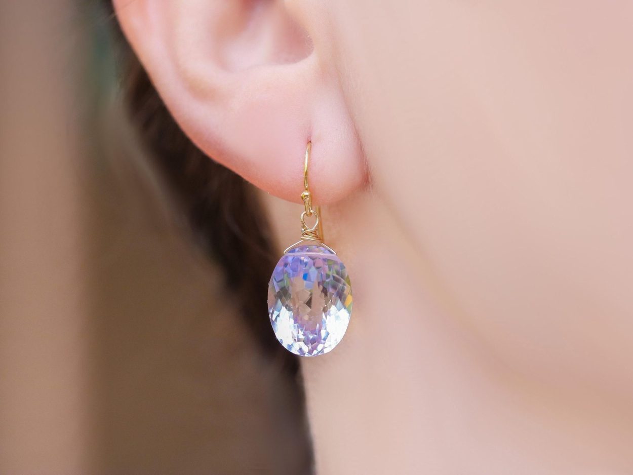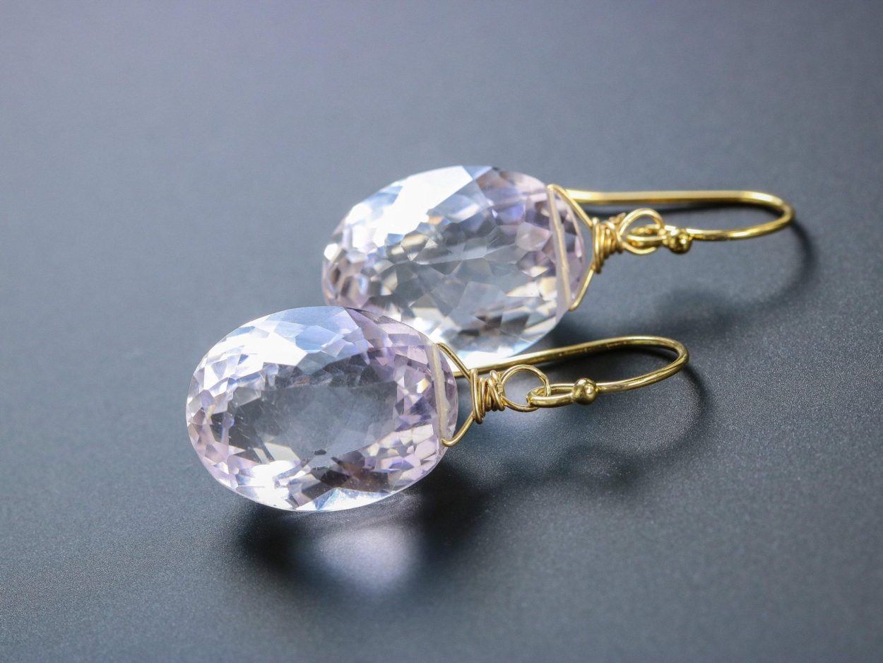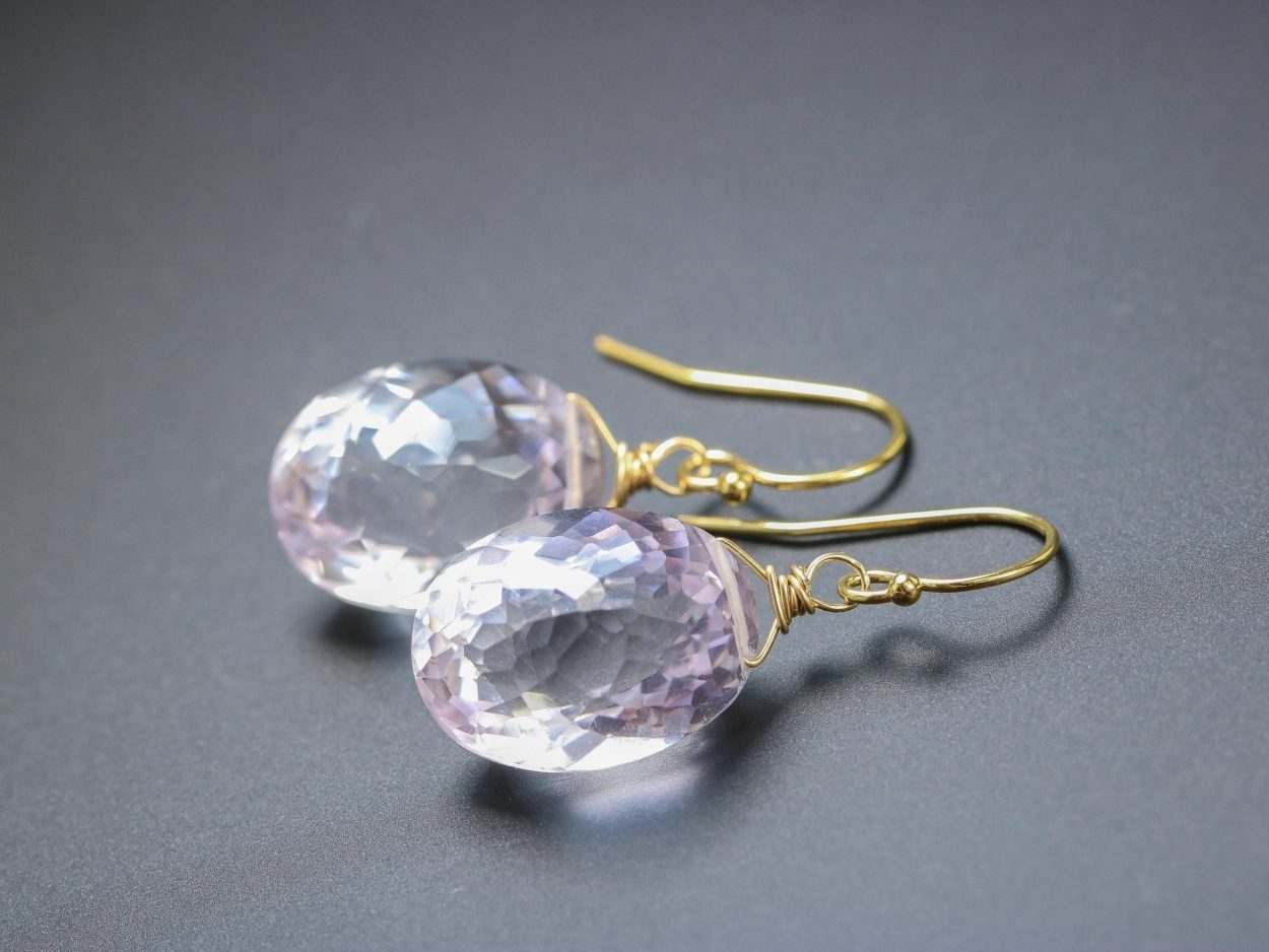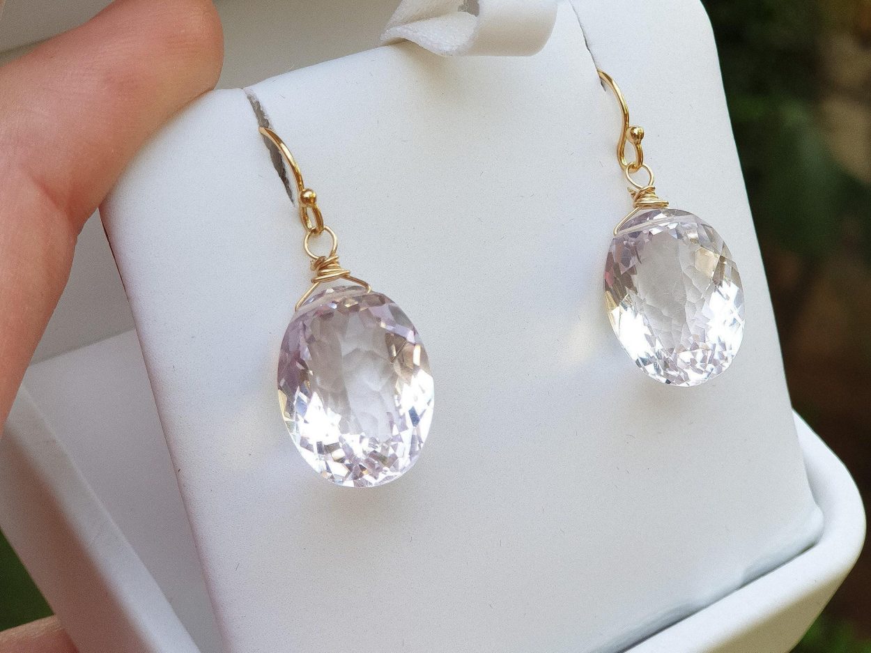 The earrings are composed of the most amazing large, faceted lavender oval Pink Amethyst briolettes.