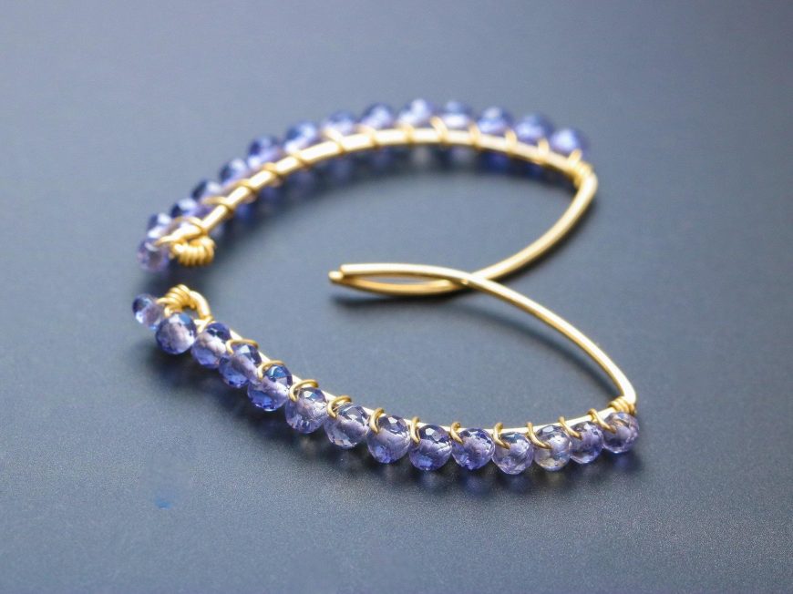 These stunning Iolite earrings are designed as open hoops and wire wrapped with elegant inky blue micro-faceted Iolites.