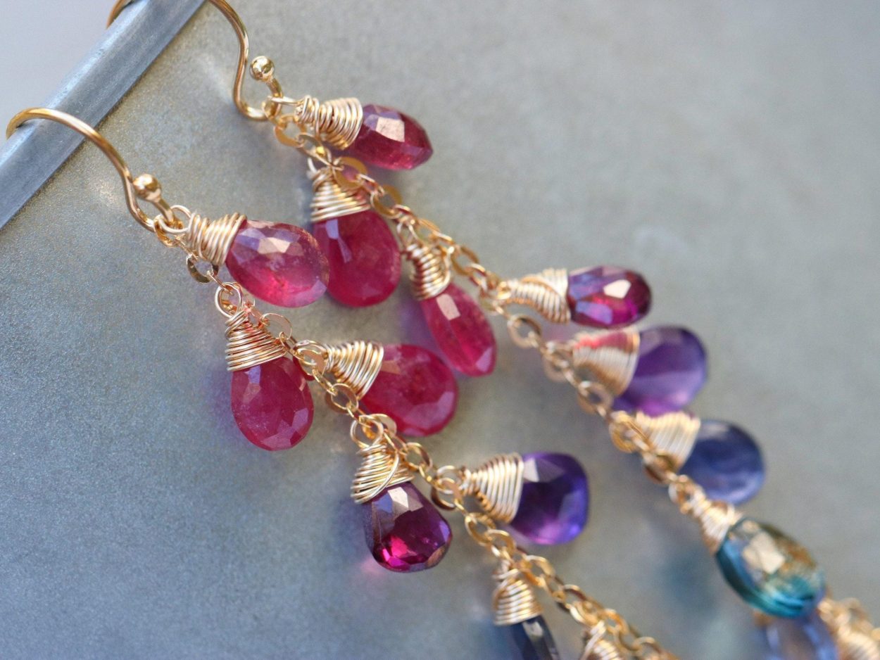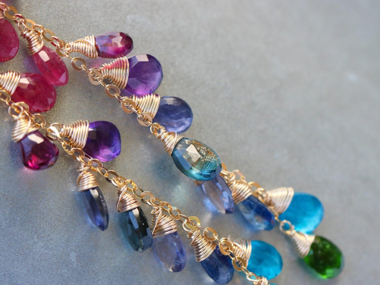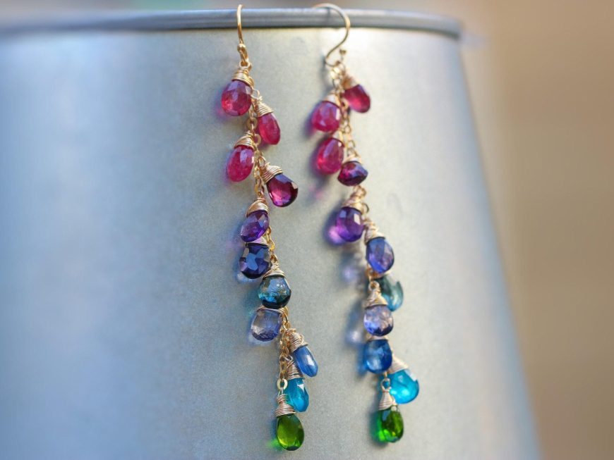 Long statement gemstone earrings full of amazing colors and perfect stones.