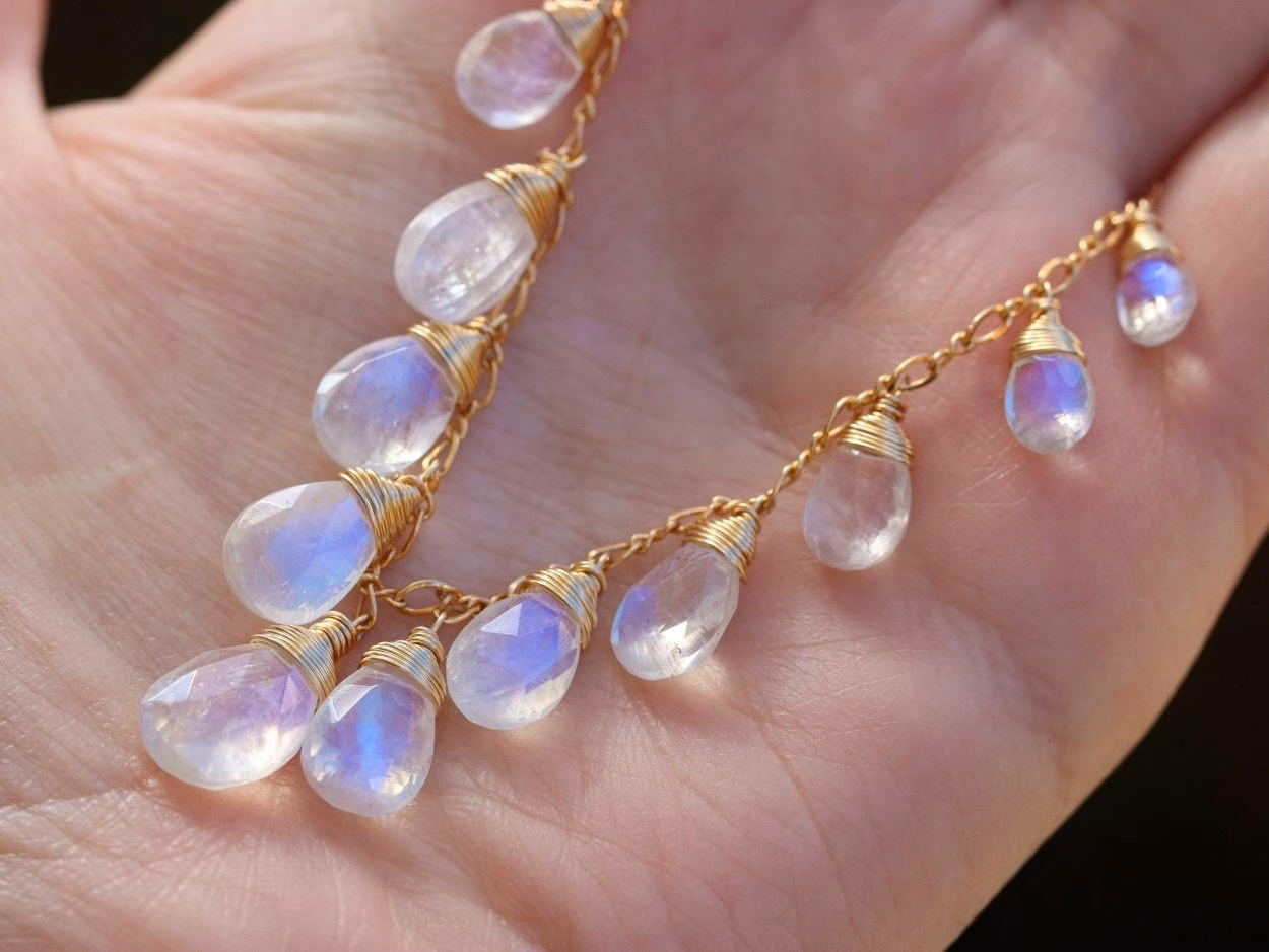This necklace is nothing short of stunning. The design is perfect and the moonstones catch the light beautifully! The artist is a joy to work, so I highly recommend the web-site, her jewelry and this piece in particular!