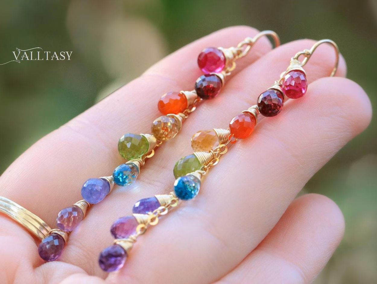 Playful long rainbow earrings full of amazing colors and perfect stones.