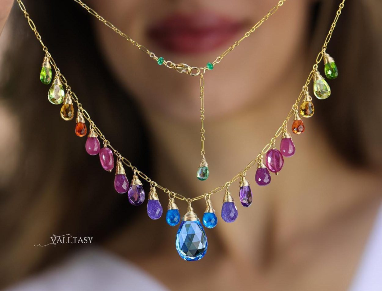 The Necklace includes excellent AAA quality gemstones, superbly faceted/polished and vibrant: