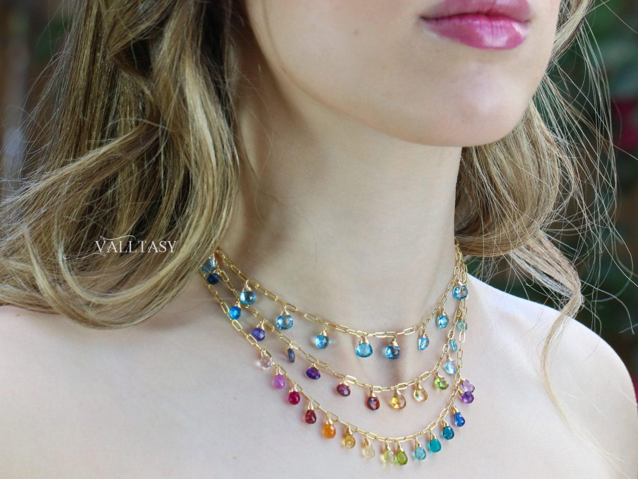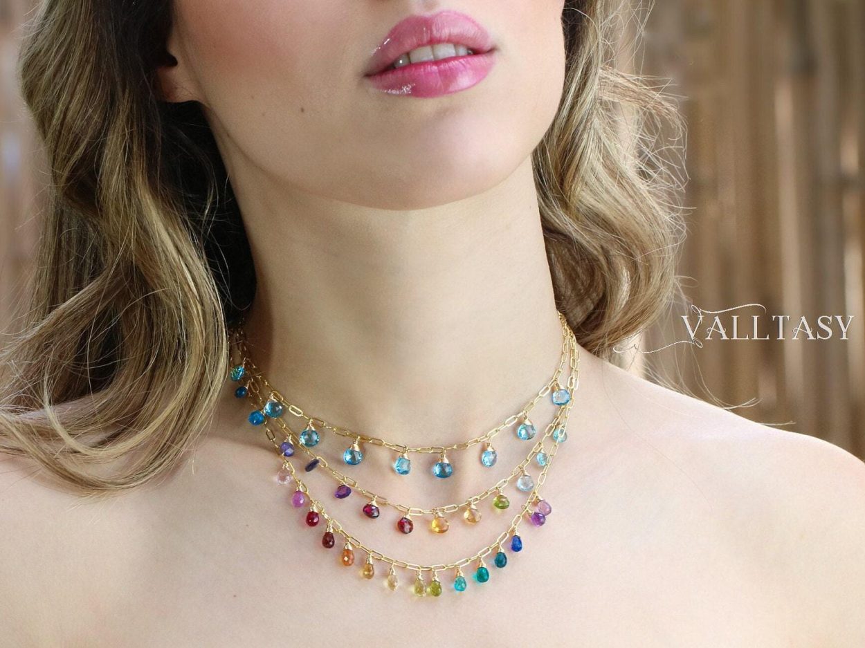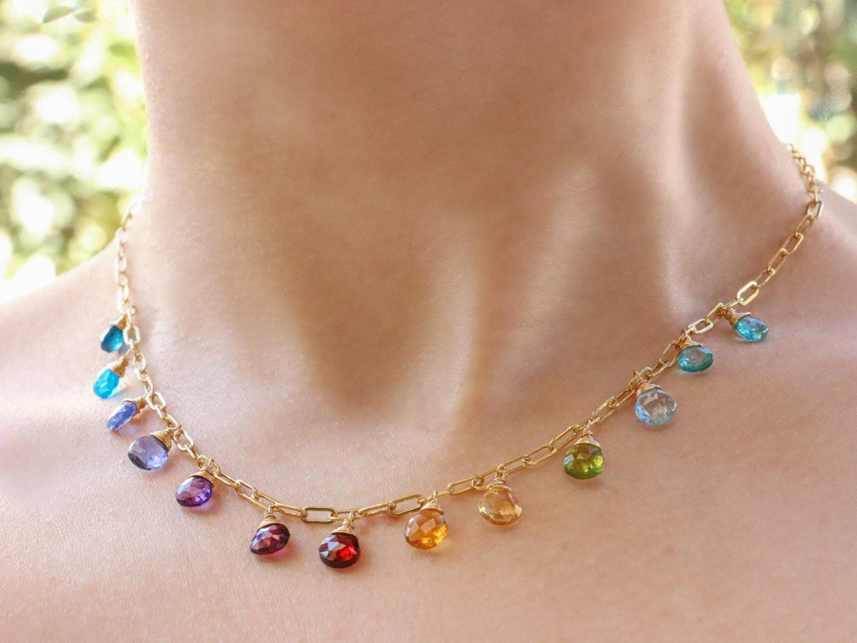 This necklace features breathtakingly gorgeous precious gemstones in a rainbow color palette that will make you dance with joy!
