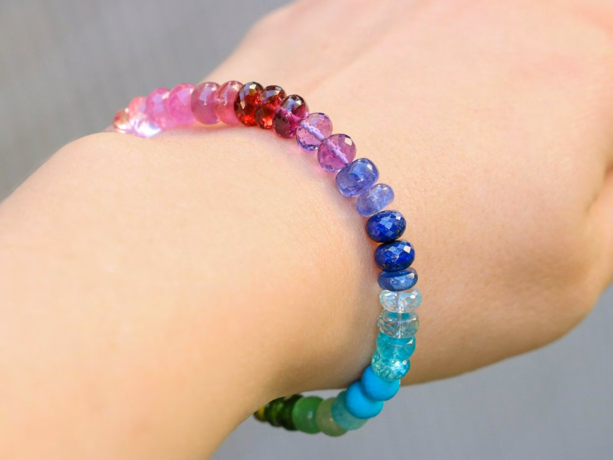 This bracelet features breathtakingly gorgeous precious gemstone rainbow palette with colors that will make you dance with joy!