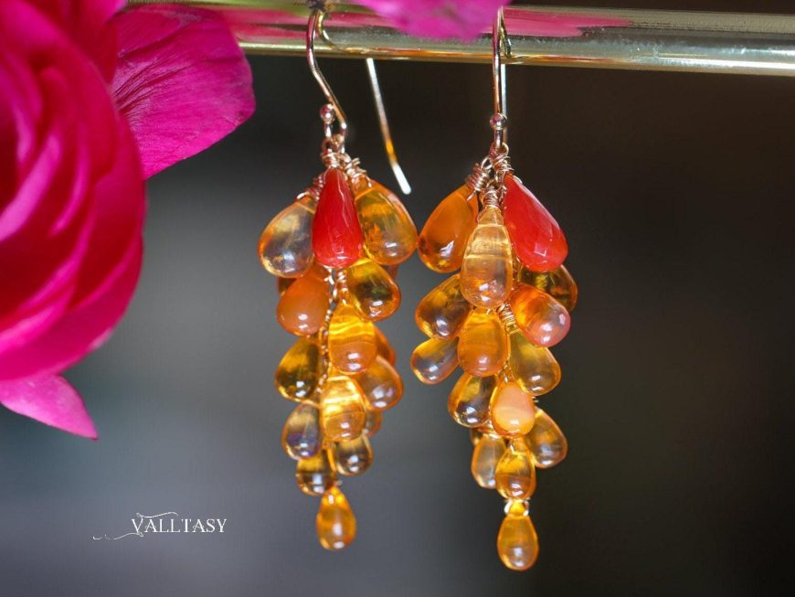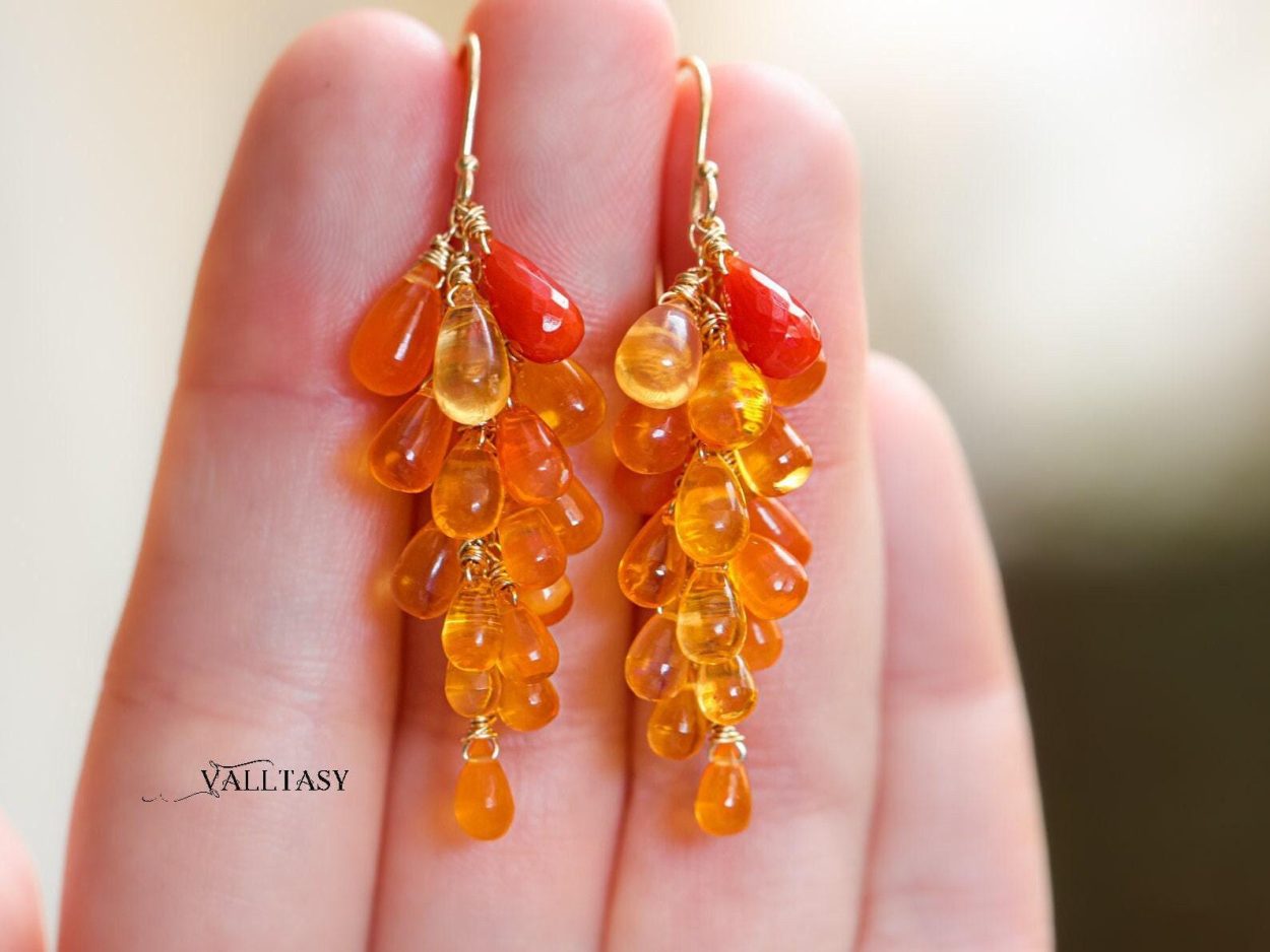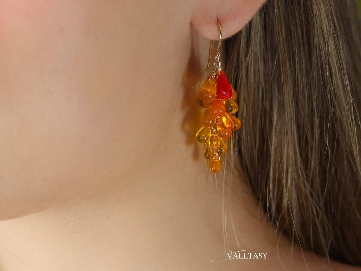 ~ Mexican Fire Opal drops – clear and with stunning vibrant colors