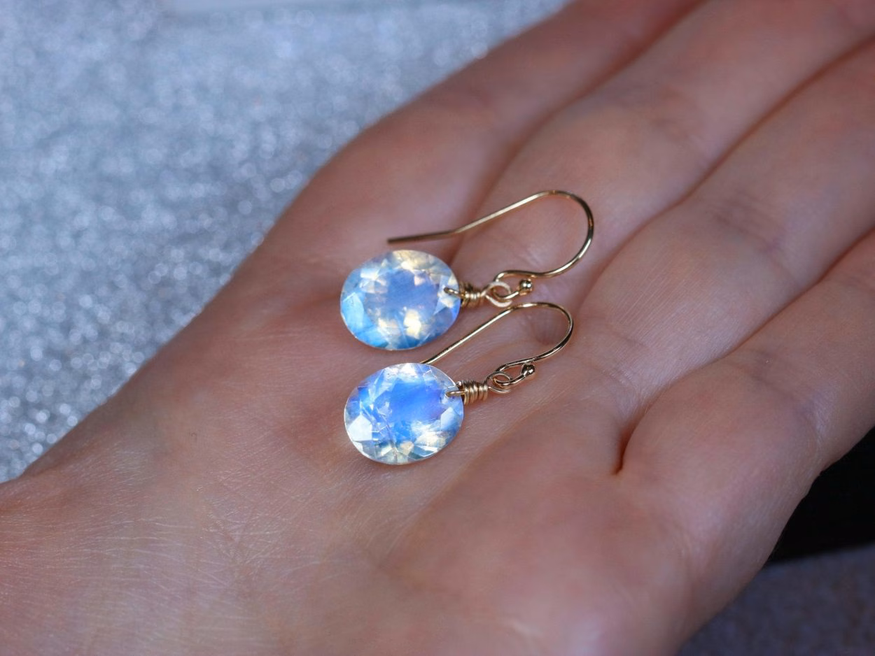 These Moonstone 14K Solid Gold earrings are composed of the most amazing Rainbow Moonstones.