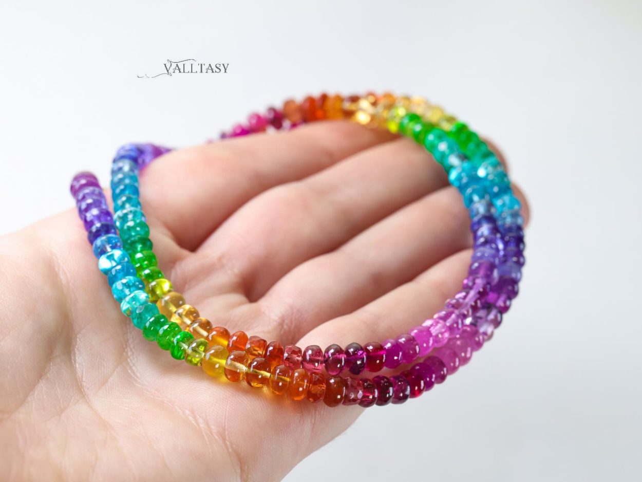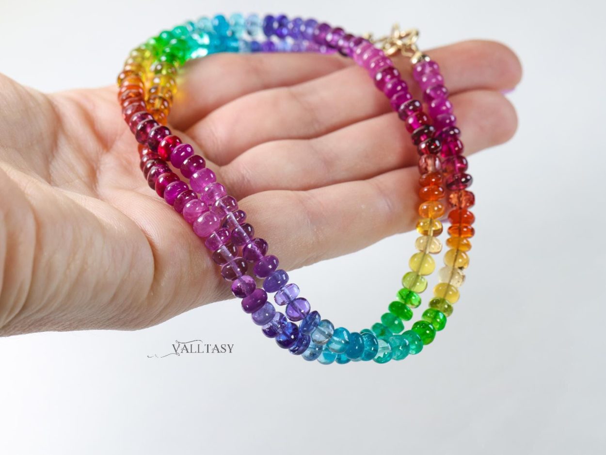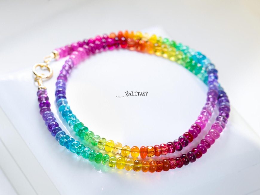Bright and glowing colors! The gems are like candies! I’ve never seen such gorgeous gems before – truly beautiful necklace, very well crafted! Thank you!