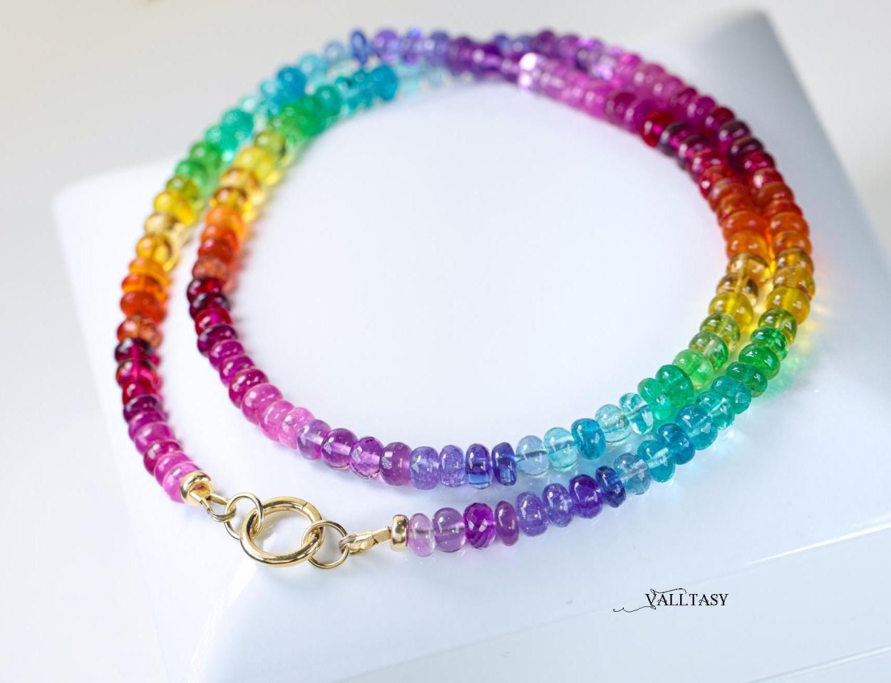 This necklace is stunning and I couldn’t be happier. Vibrant would be an understatement – it positively glows – and the quality and craftsmanship are obvious. Valerya was a joy to work with, as well, and she ensured that I got my necklace in no time. I will be a repeat customer for sure.