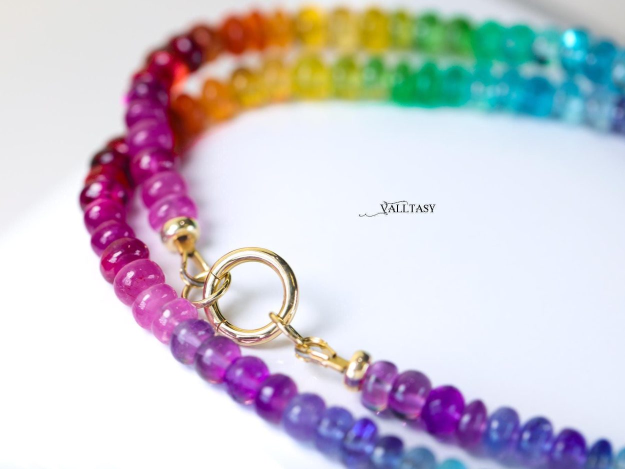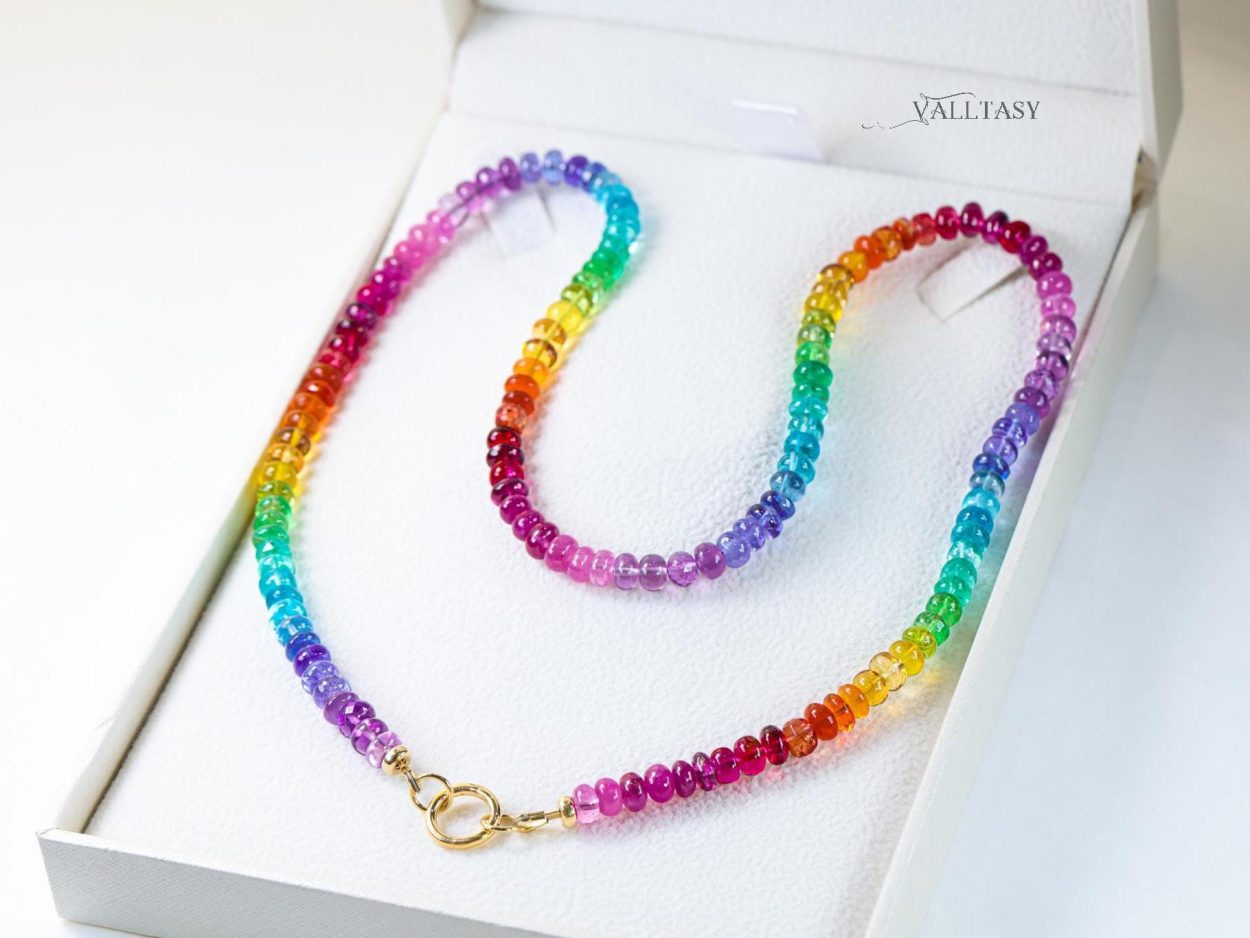 Introducing the most radiant and electrifying gemstone necklace I’ve ever crafted! Featuring a dazzling array of genuine Emeralds, fiery Red Spinels, vibrant Tsavorites, stunning Sapphires and Rubies, this necklace creates a flawless rainbow effect that illuminates your neckline, making you an absolute showstopper.
