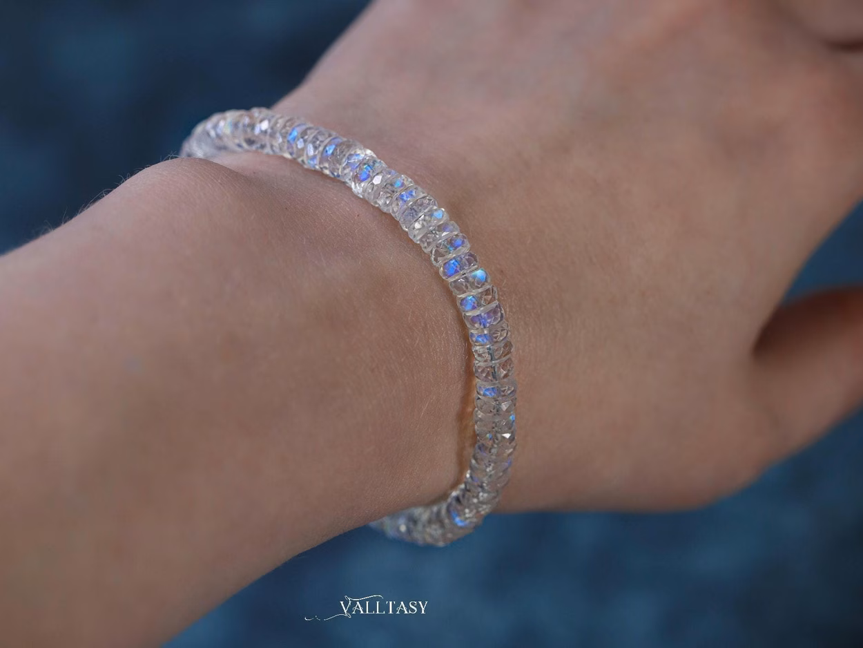 Beautifully, handcrafted bracelet. The faceted moonstone rondelle beads are gorgeous! Item arrived beautifully wrapped and quickly. Thank you.