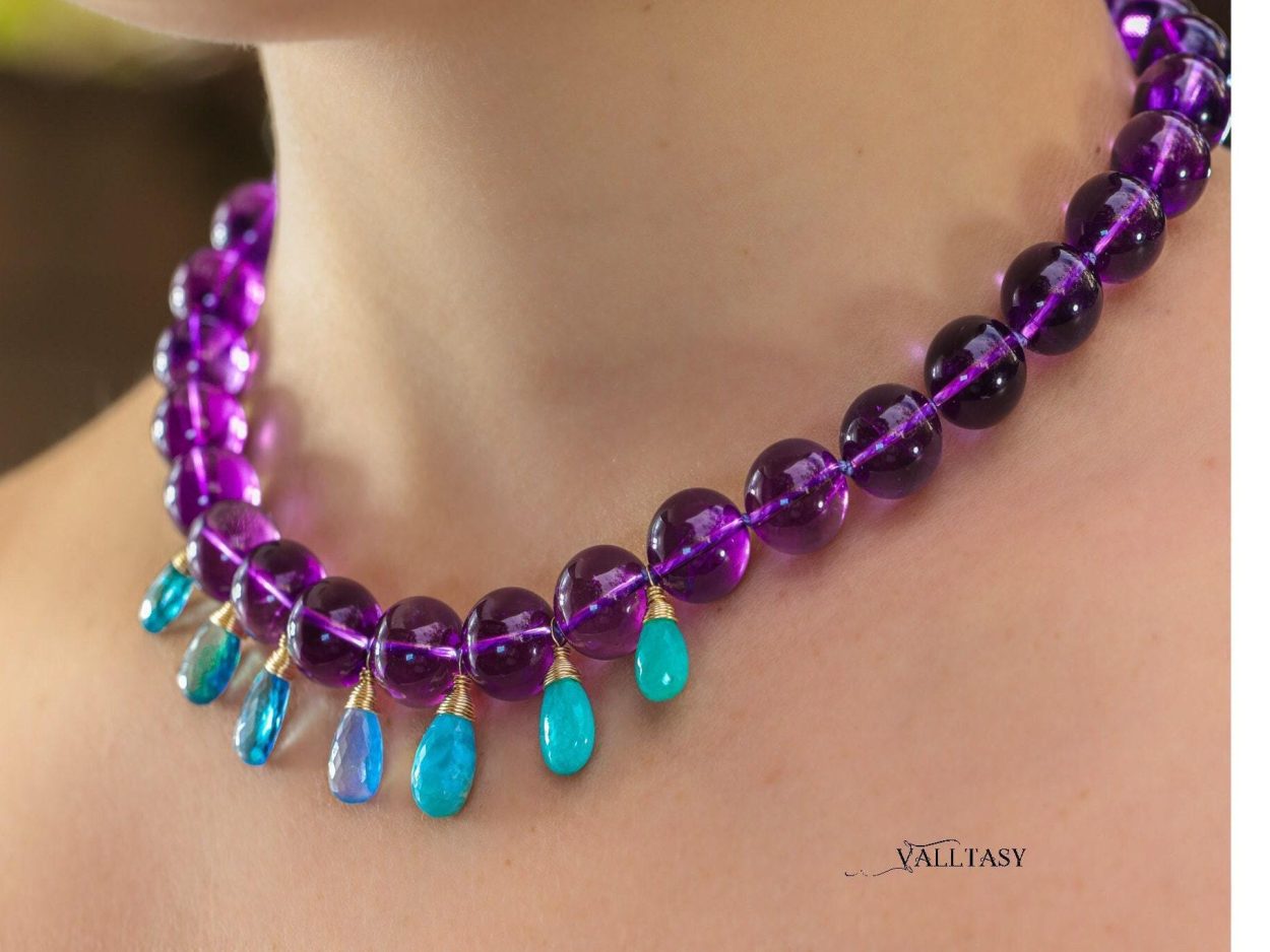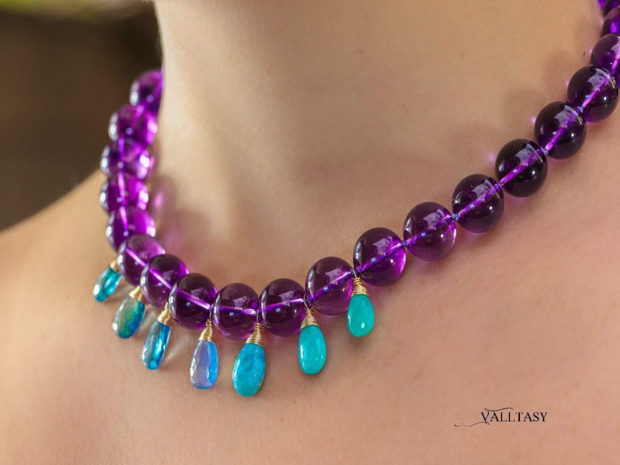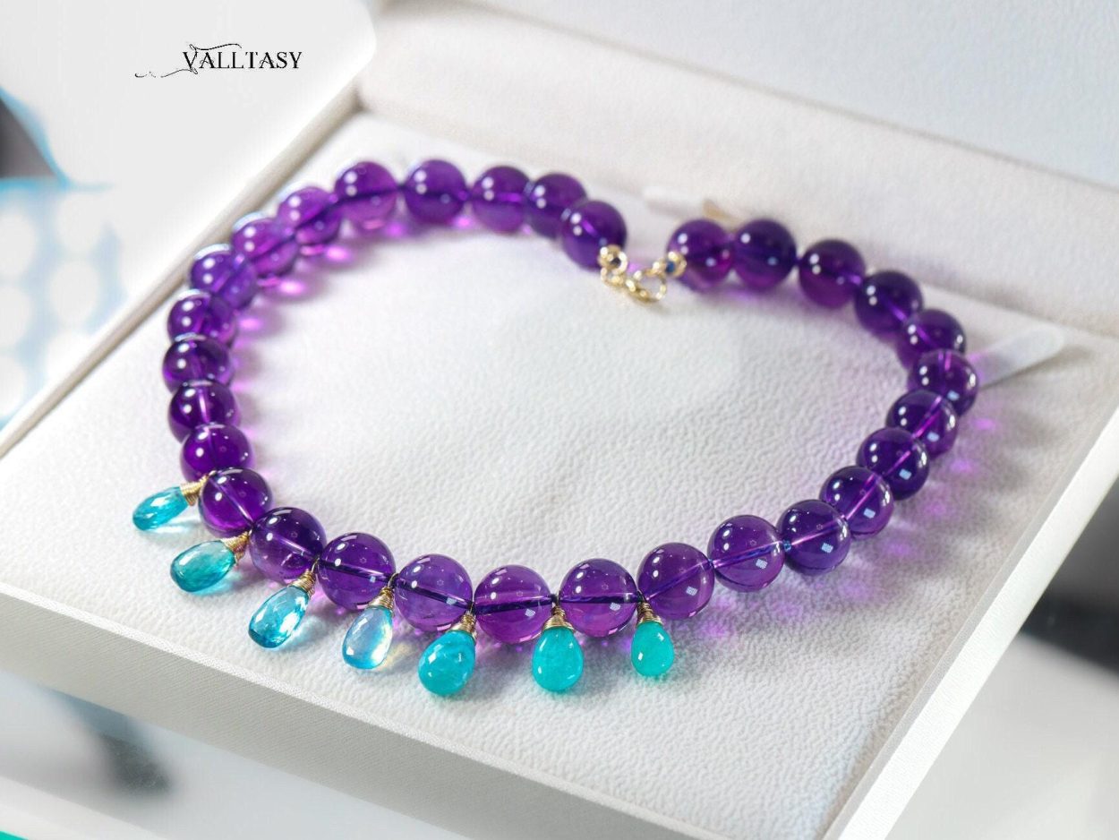 The Necklace includes excellent AAA quality gemstones, they are natural, undyed, superbly polished and vibrant: